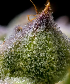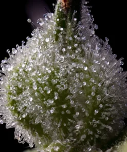 Et tykt lag af trichomer dækker overfladen af hver knop, hvilket skaber et karakteristisk krystallinsk udseende.